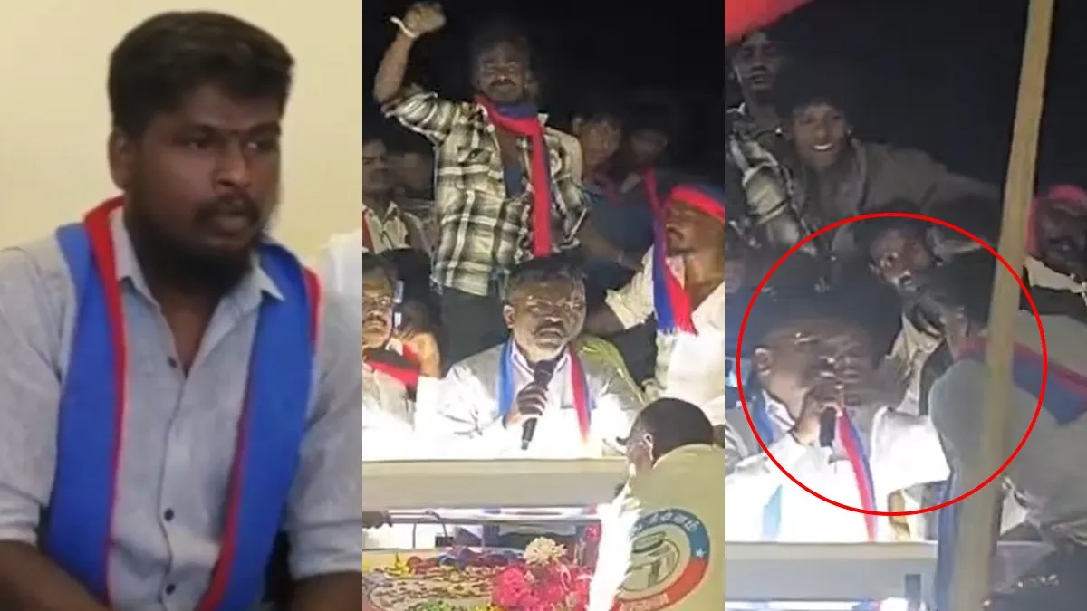 During an election campaign in Theni, a youth who was slapped by VCK leader Thol. Thirumavalavan has released a video clarifying the incident. In the video, he stated that even if his leader hit him, it was for his own good, sparking widespread reactions and discussions on social media.