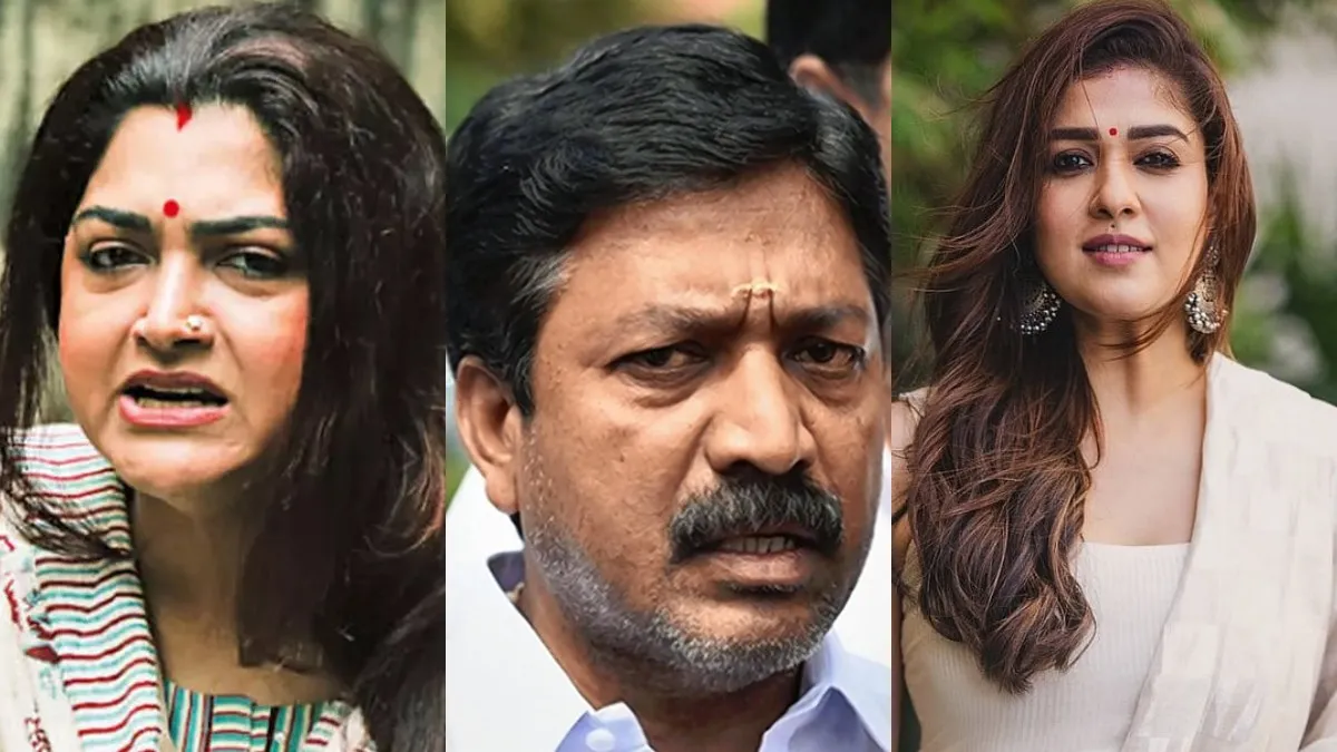 Khushbu Sundar has strongly condemned C. V. Shanmugam for his derogatory comments about Nayanthara, stating that such remarks reflect a person’s upbringing and mindset.