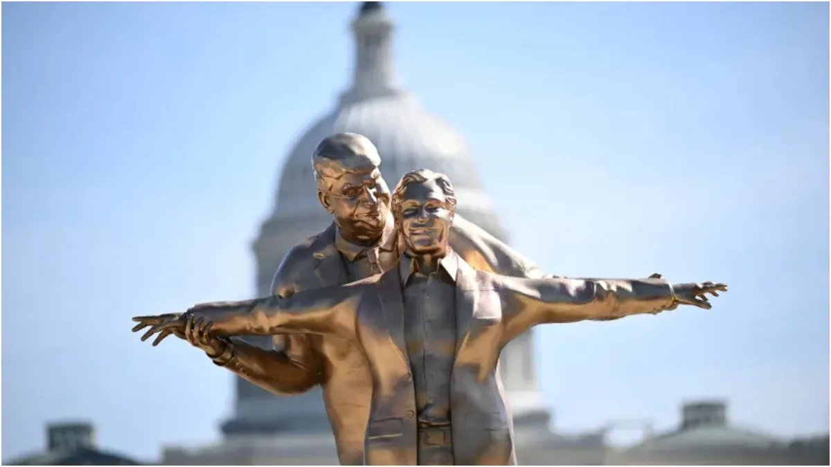 Trump and Epstein Titanic Statue: Trump’s alleged ties to notorious sex offender Jeffrey Epstein have been repeatedly raised. In this context, an artist group called ‘Secret Handshake’ has created a statue of Trump in the Titanic pose with Epstein and placed it in the middle of Washington, D.C.