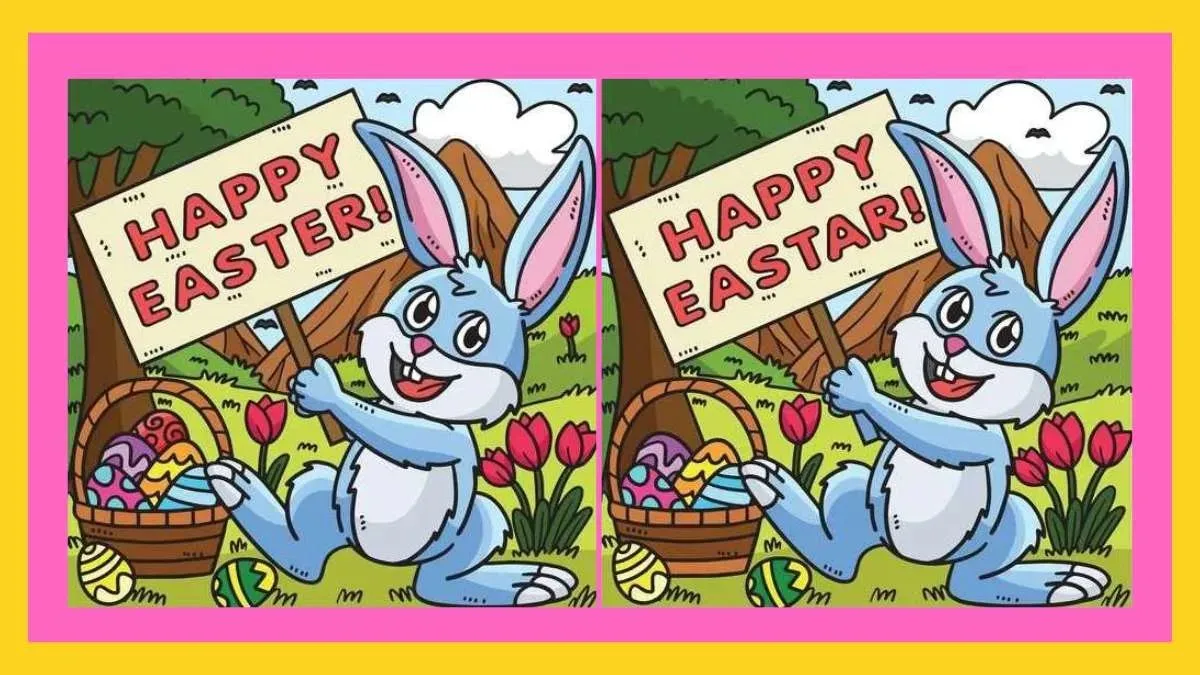 Test your observation skills with this engaging Easter-themed puzzle! Set in a beautiful scene with a flower garden, mountains, and clouds, a smiling bunny holds a “Happy Easter” sign. While the two images look identical at first glance, eight subtle differences are cleverly hidden within. Can you find them all in just 45 seconds? Give it a try and challenge your friends!